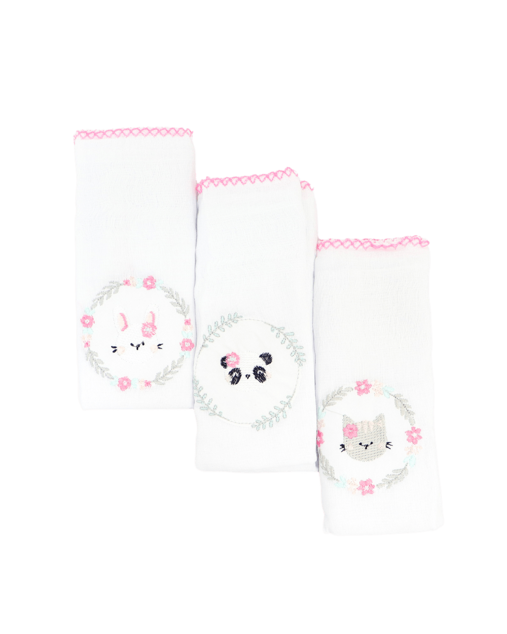 Fralda bordada pacote com 3 peças, ideal para proteção do bebê, para forrar superfície, colocar na ombro para proteger a pele do bebê. Lindas e delicadas.