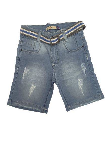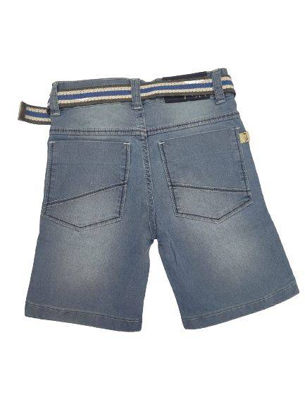 Bermuda jeans masculina infantil, com bolsos frontal e traseiro, fecho por botão e zíper. Cós com regulagem e passante para cinto. Acompanha 1 cinto. Barra simples Cor: Jeans claro Composição: 70% algodão, 18% poliéster, 2% elastano.