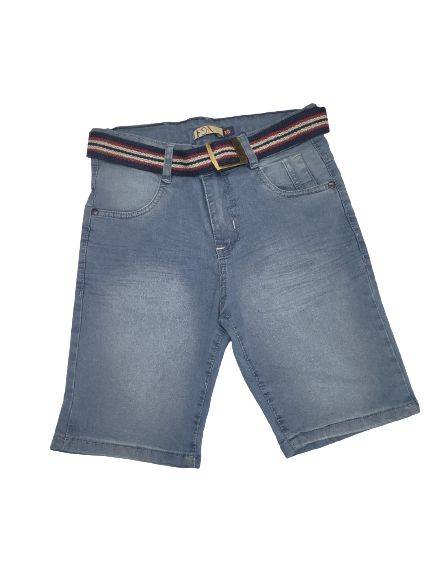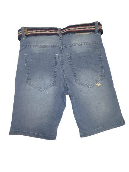 Bermuda jeans masculina infantil, com bolsos frontal e traseiro, fecho por botão e zíper. Cós com regulagem e passante para cinto. Acompanha 1 cinto. Barra simples Cor: Jeans Claro Composição: 70% algodão, 18% poliéster, 2% elastano.