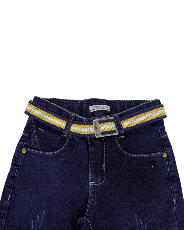 Bermuda Jeans Horock barra simples, ajuste em seu cós bolsos, acompanha cinto.