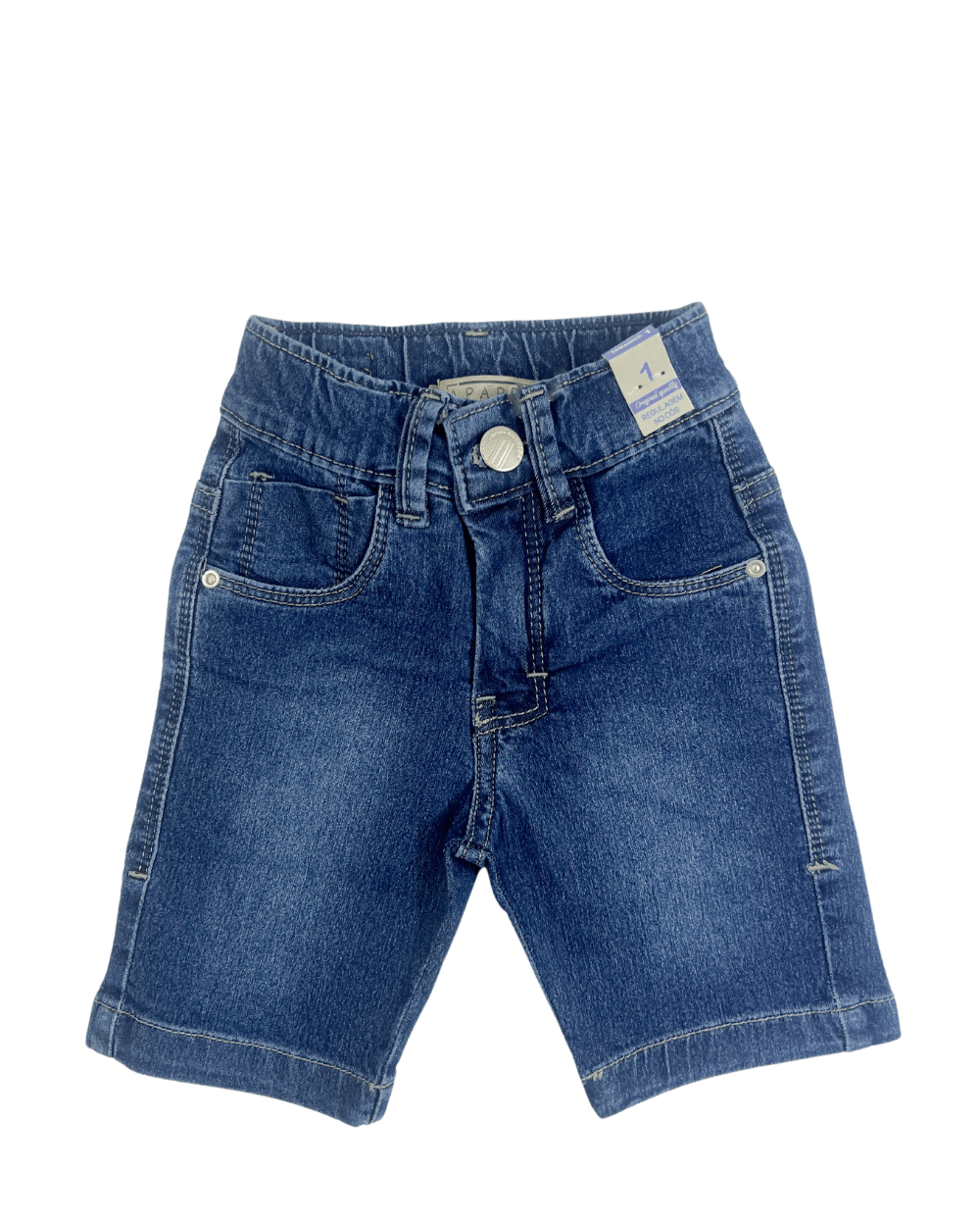 Bermuda Jeans Paparrel, cintura elástica lavagem escura do jeans.