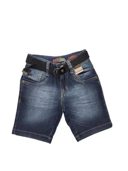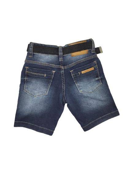 Bermuda jeans masculina infantil ,com bolsos frontal e traseiro, fecho por botão, cós com regulagem, e passante para cinto. Barra acabamento simples.