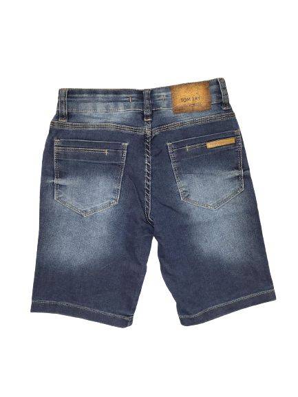 Bermuda jeans masculina infantil ,com bolsos frontal e traseiro, fecho por botão, cós com regulagem, e passante para cinto. Barra acabamento simples. LAVAGEM MÉDIA COMPOSIÇÃO.: 72% algodão, 25 poliéster, 3% elastano