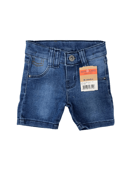 Bermuda jeans masculina infantil ,com bolsos frontal e traseiro, fecho por botão, cós com regulagem, e passante para cinto. Barra acabamento simples. Composição: 84% Algodão, 14% Poliéster, 02% Elastano. Cor: Lavagem Escura
