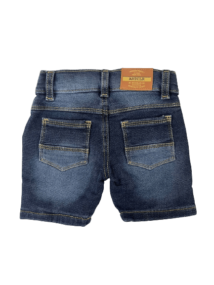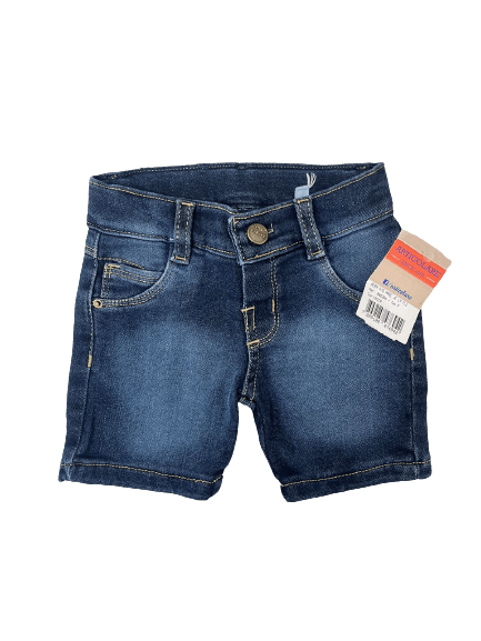 Bermuda jeans masculina infantil ,com bolsos frontal e traseiro, fecho por botão, cós com regulagem, e passante para cinto. Barra acabamento simples. Composição: 84% Algodão, 14% Poliéster, 02% Elastano. Cor: Lavagem Média
