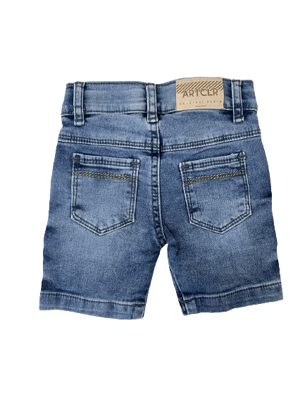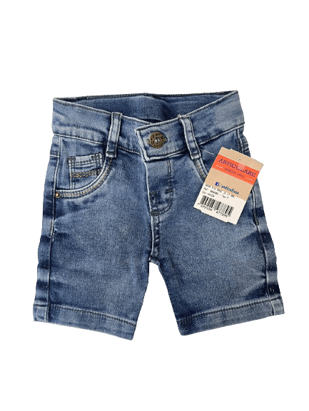 Bermuda jeans masculina infantil ,com bolsos frontal e traseiro, fecho por botão, cós com regulagem, e passante para cinto. Barra acabamento simples. Composição: 84% Algodão, 14% Poliéster, 02% Elastano. Cor: Lavagem Média