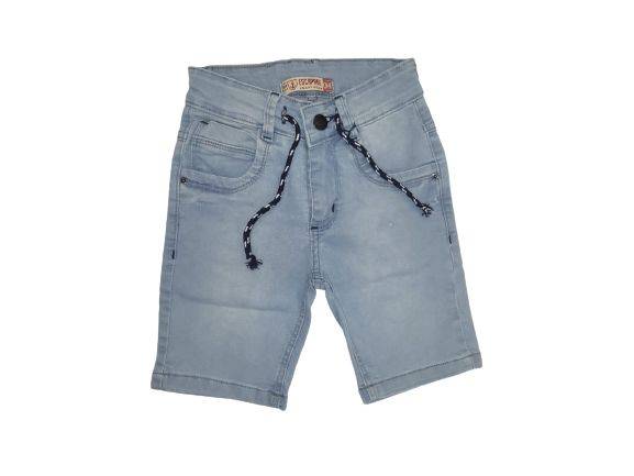 Bermuda Jeans infantil masculina, com bolso frontal e traseiro, cordão para ajustar. Barra acabamento simples.