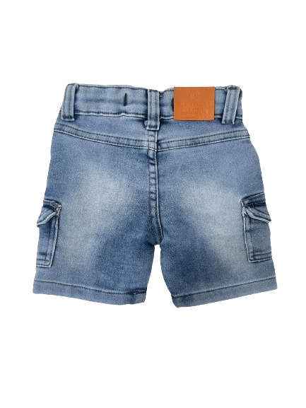 Bermuda jeans masculina infantil ,com bolsos frontal e lateral, fecho por botão, cós com regulagem, e passante para cinto. Barra acabamento simples. Composição: 70% Algodão, Poliéster, Elastano 2% Cor: Jeans lavagem médio