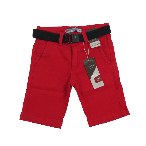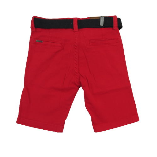 Bermuda sarja infantil, com bolsos frontal e traseiro. Cós com regulagem e cordão ajustável. Cós com regulagem e passante para cinto.