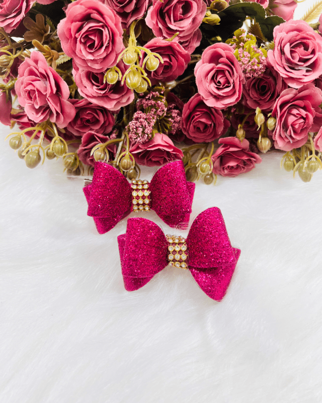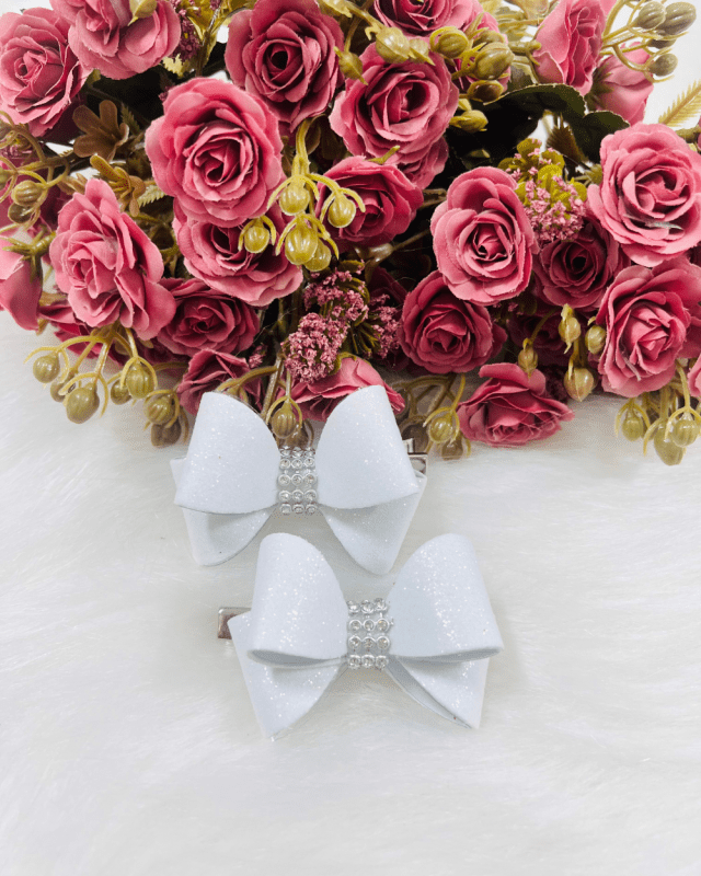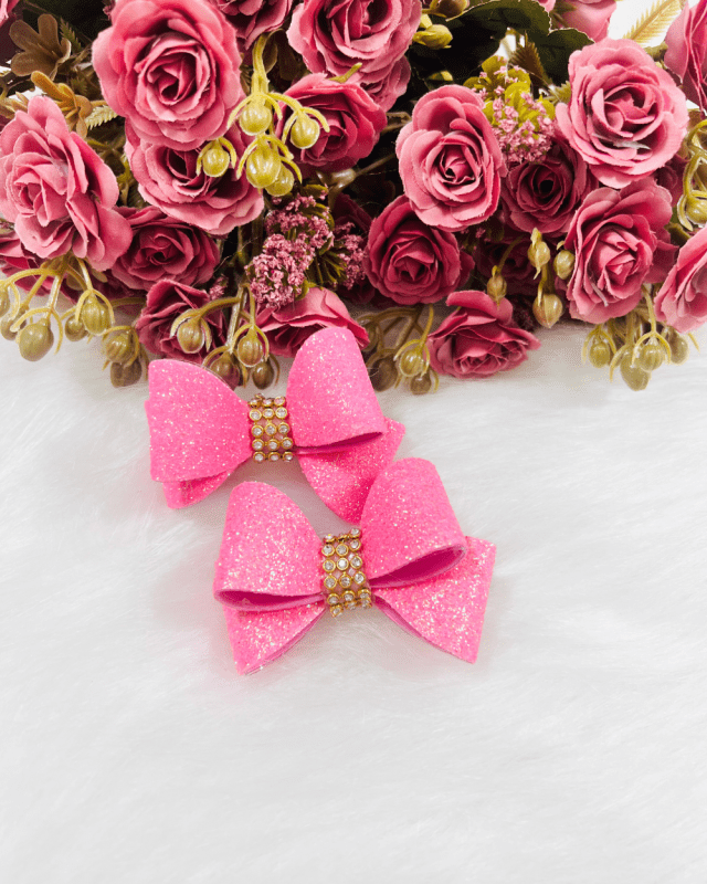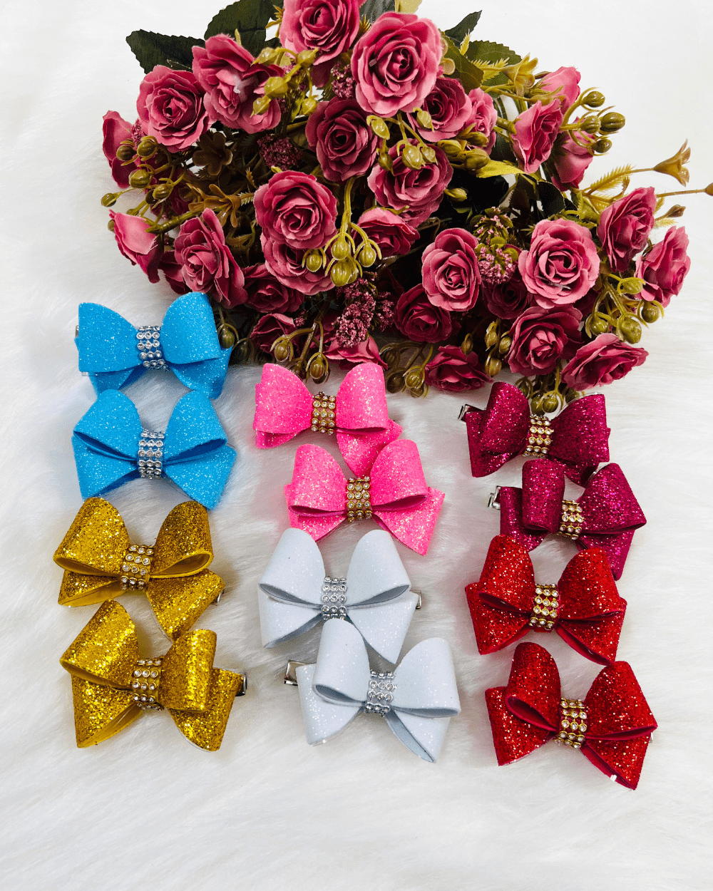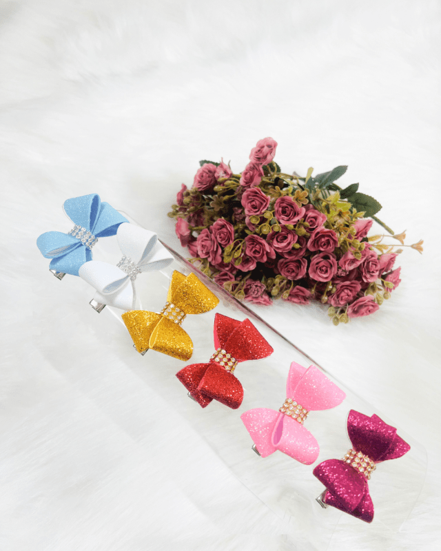 Bico de pato infantil pequeno laço com aplicação de glitter é um acessório prático, dá charme à produção e pode ser usado tanto em passeios informais como em festas ou eventos formais, além de dar aquela elegância. (VENDIDOS O PAR)