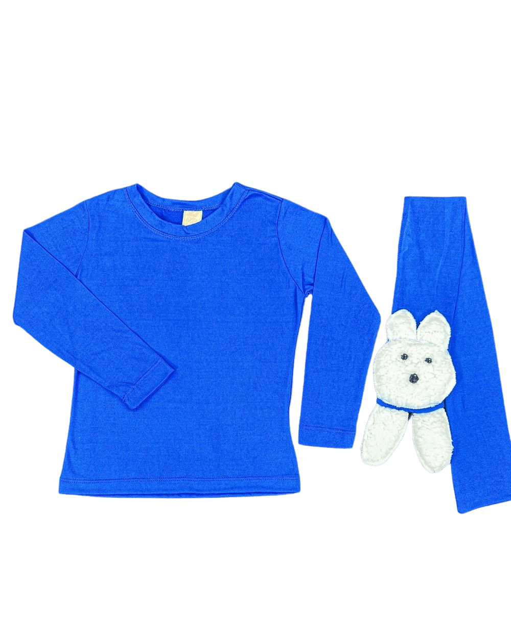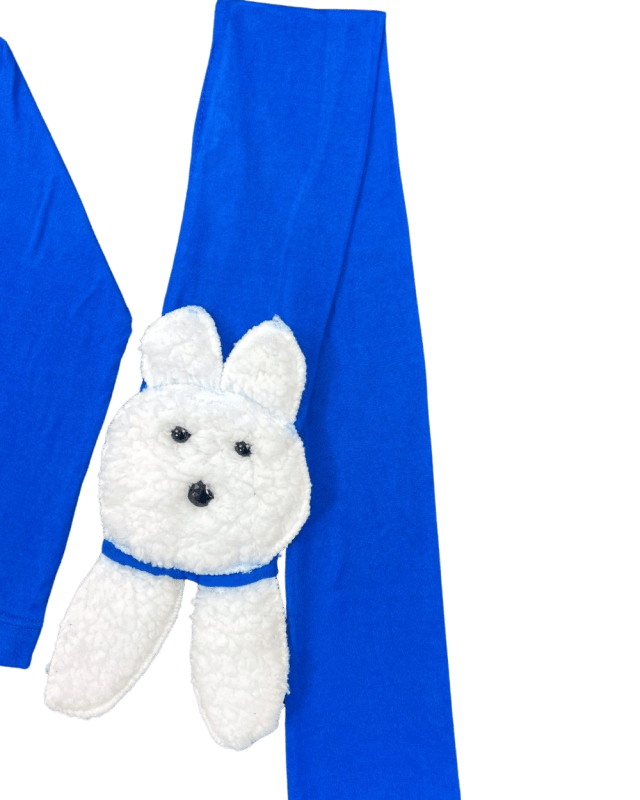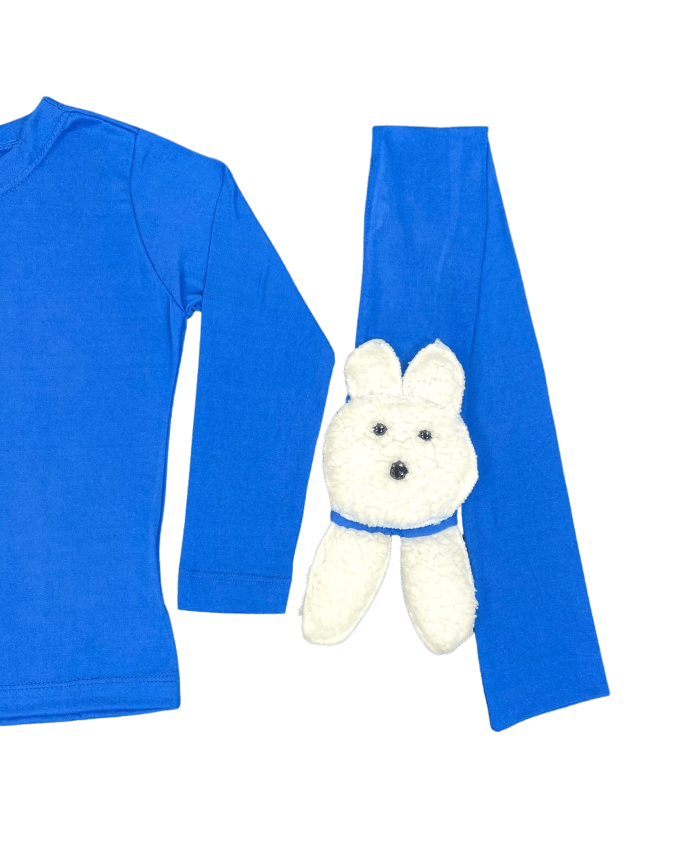 Blusa Mell Kids, manga longa gola redonda, cor azul royal acompanha 1 cachecol com coelhinho branco na ponta pra da um charme.
