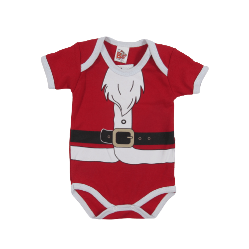 Body manga curta estampado papai noel, fechamento entre as pernas.