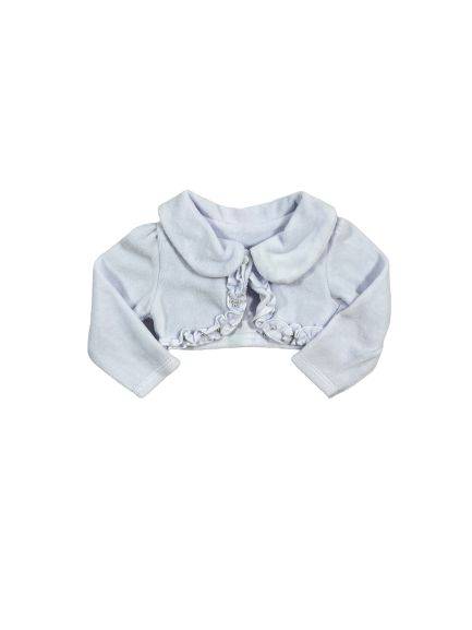 Bolero de PLUSH. Com gola. Detalhes de pérolas sintéticas e strass. COR.: BRANCO COMPOSIÇÃO.: 100% POLIÉSTER