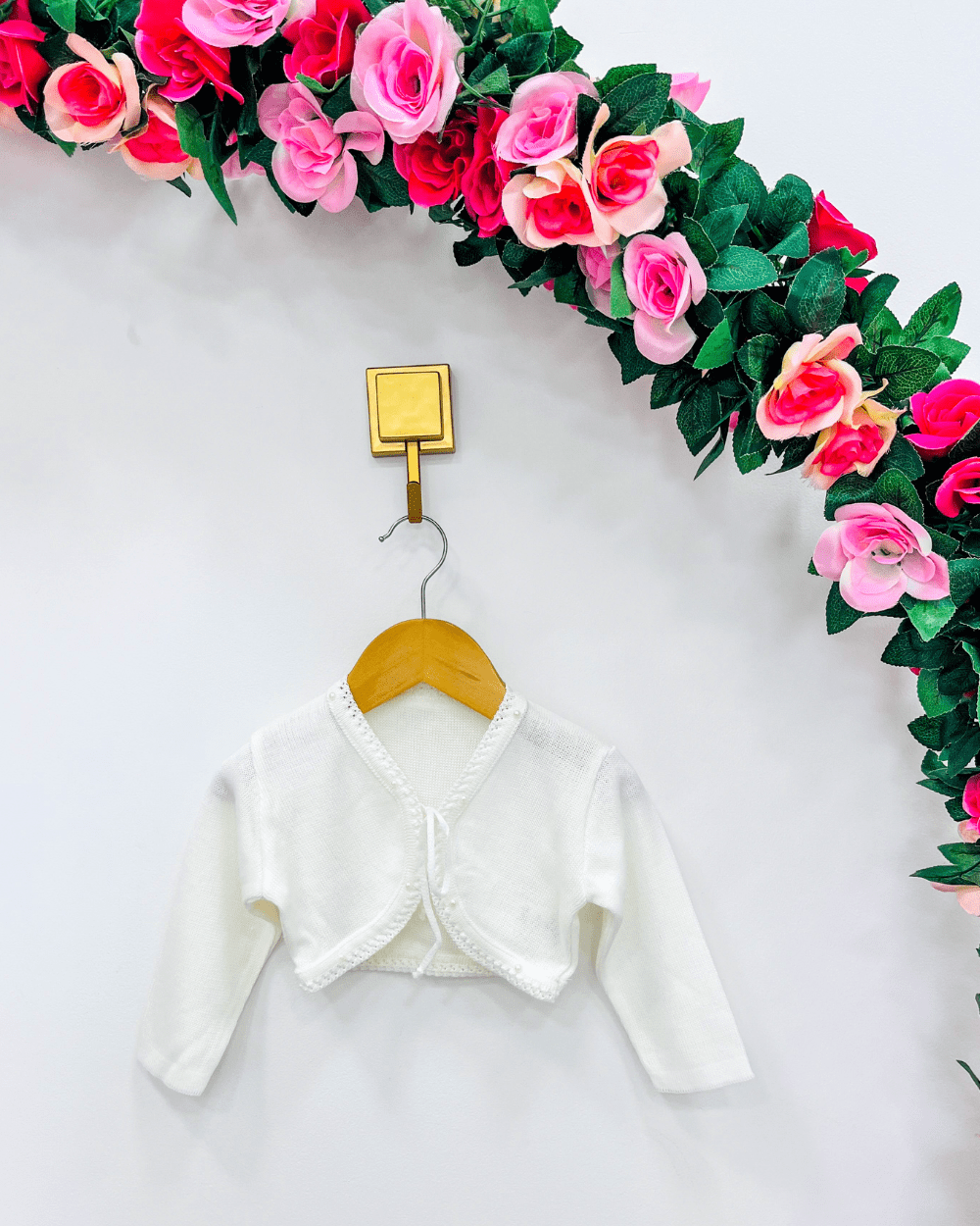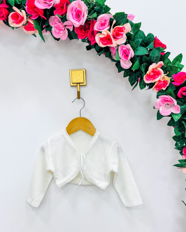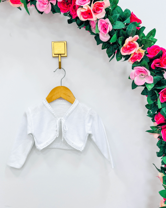 Bolero infantil , manga longa linho, com aplicação de pérolas sintéticas. Ideal para os dias mais friozinhos.
