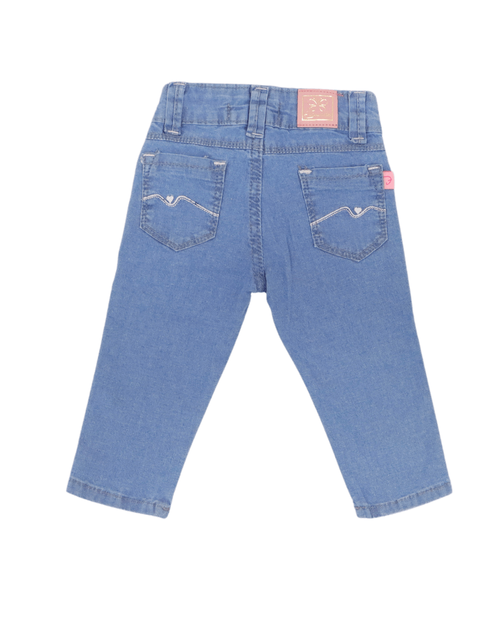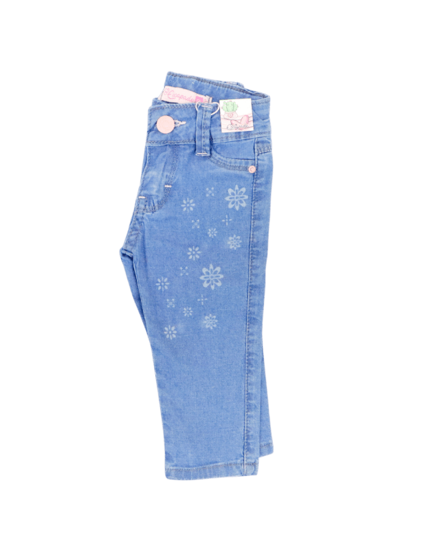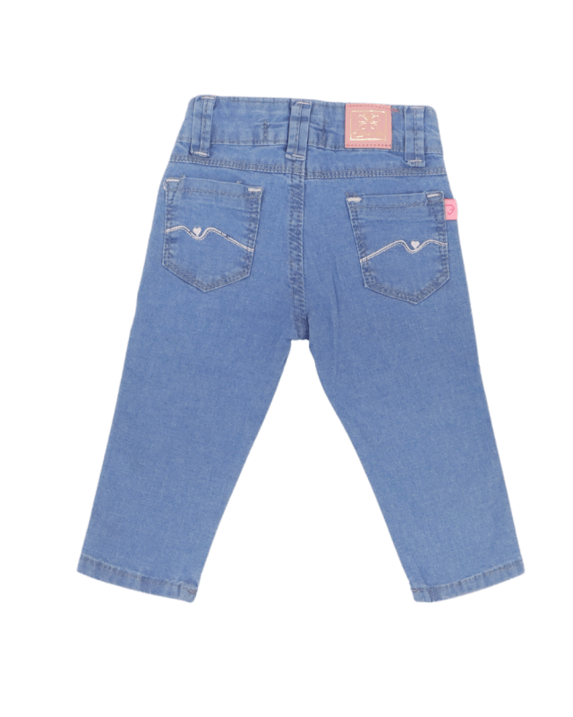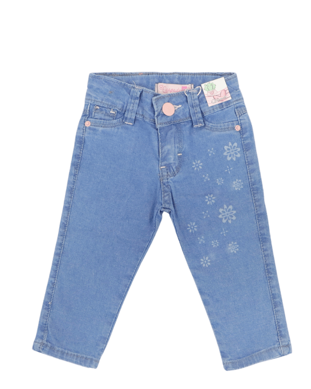 Calça Feminina, Escapade, detalhes estampado em sua perna esquerda regulagem no cós lavagem clara e barra simples.