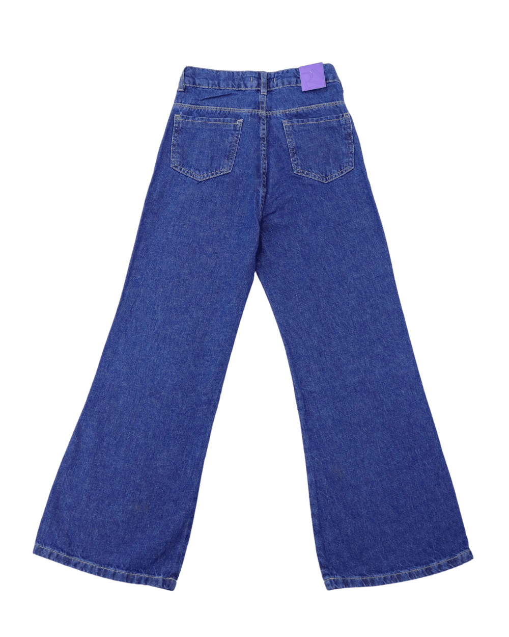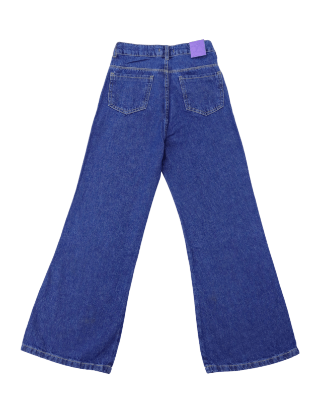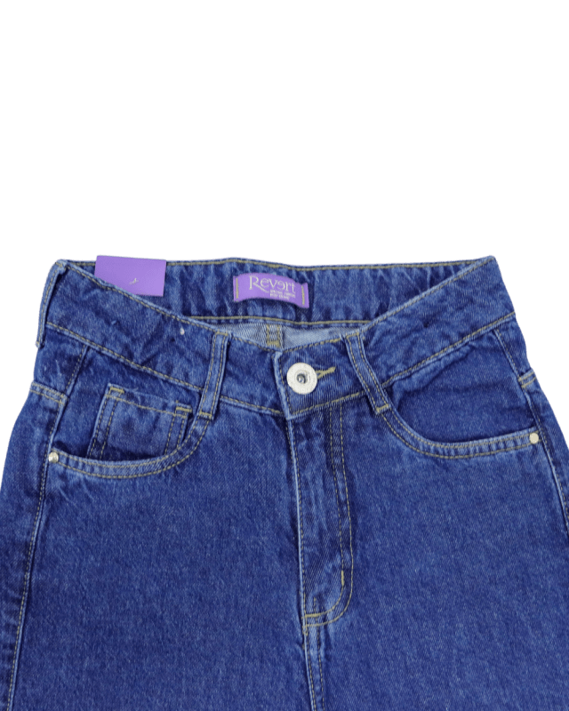 Calça Jeans Feminina Revert Wide Leg, cós com regulagem e passante para cinto. Barra acabamento simples.