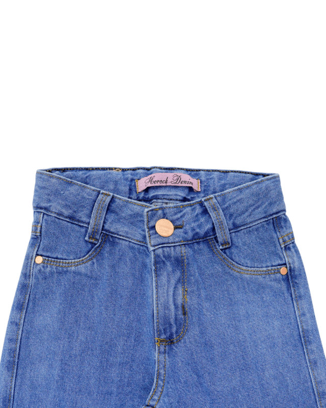Calça Jeans feminina Horock barra simples, ajuste em seu cós bolsos.