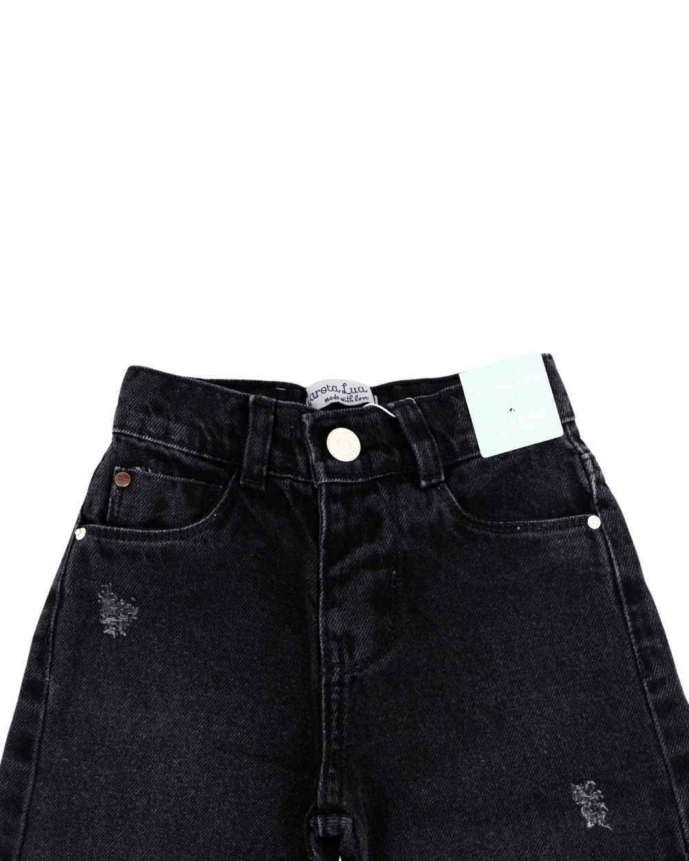 Calça feminina infantil Garota Lua com ajuste no cós, modelo despojado e que combina para qualquer ocasião. Fechamento por ziper e botão.