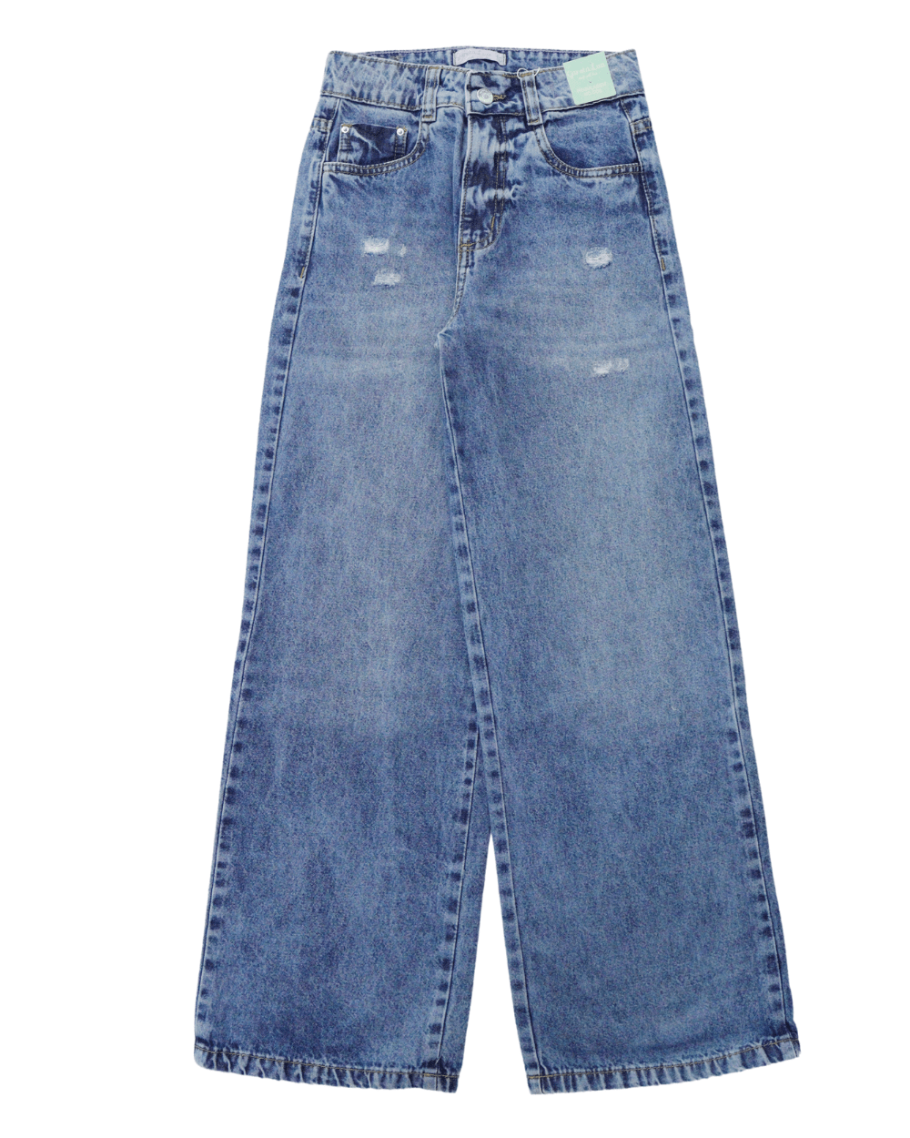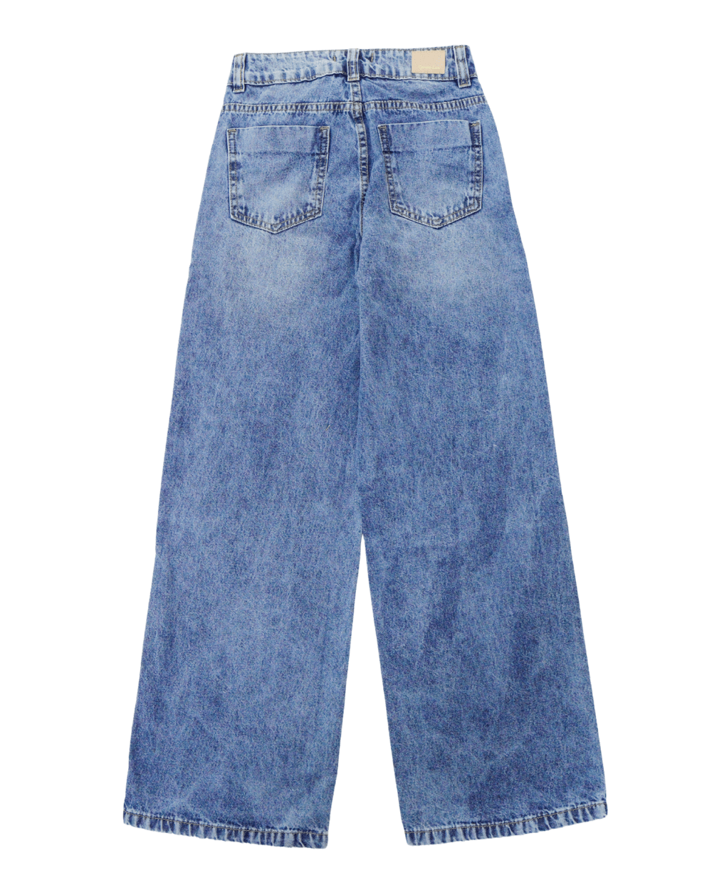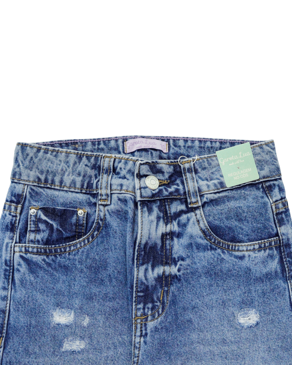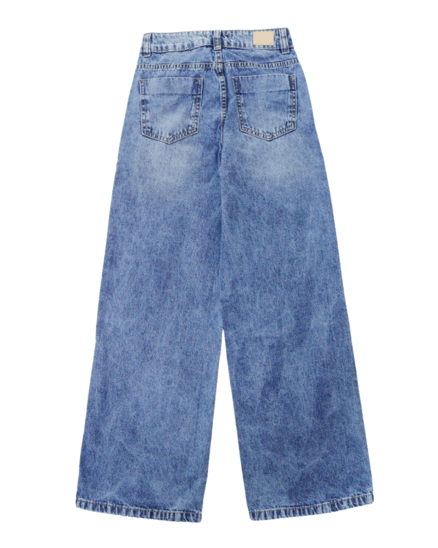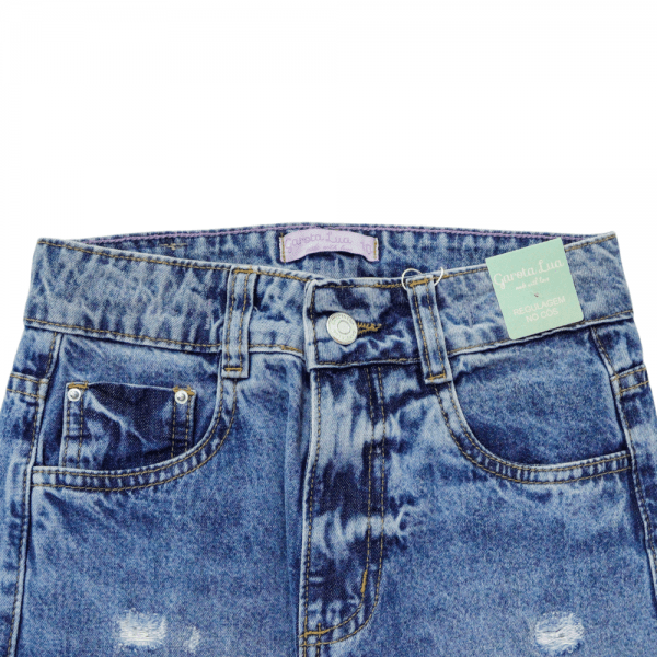 Calça Feminina, garota lua, lisa com lavagem média regulagem no cós e barra simples.