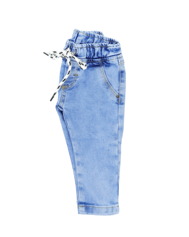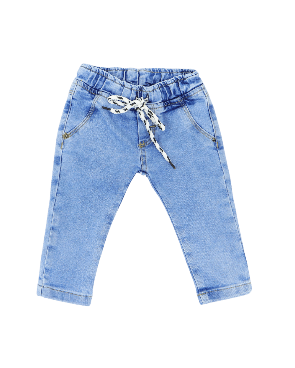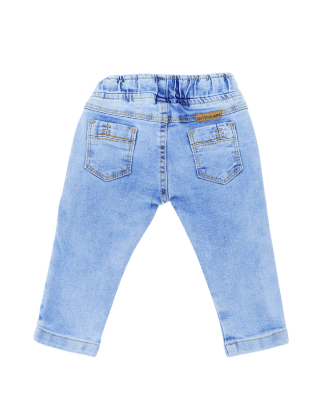 Calça masculina jeans Articolare com cintura elástica para melhor ajuste ao corpo, lavagem clara bolso frontal fake e bolsos traseiros legítimos.