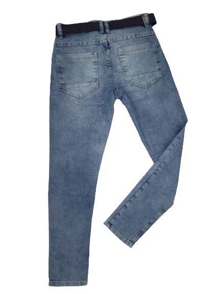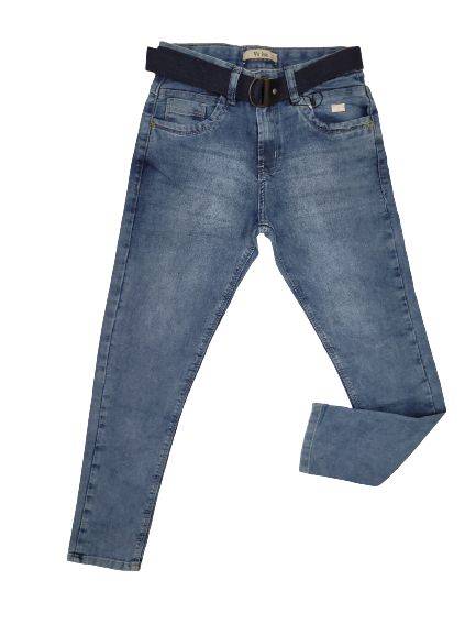Calça jeans masculina ,com bolsos frontal e traseiro, fecho por botão e zíper, cós com regulagem e passante para cinto.