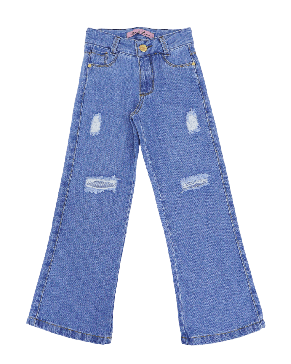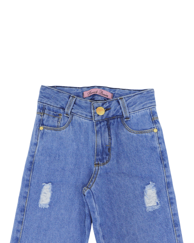 Calça Feminina, Horock , Wide leg, detalhes desfiados regulagem no cós lavagem clara e barra simples.