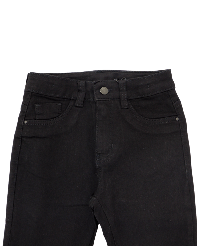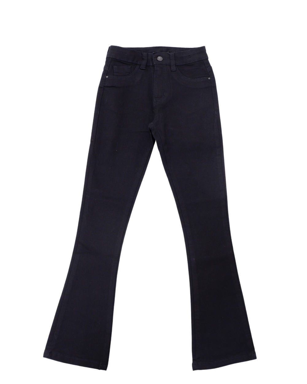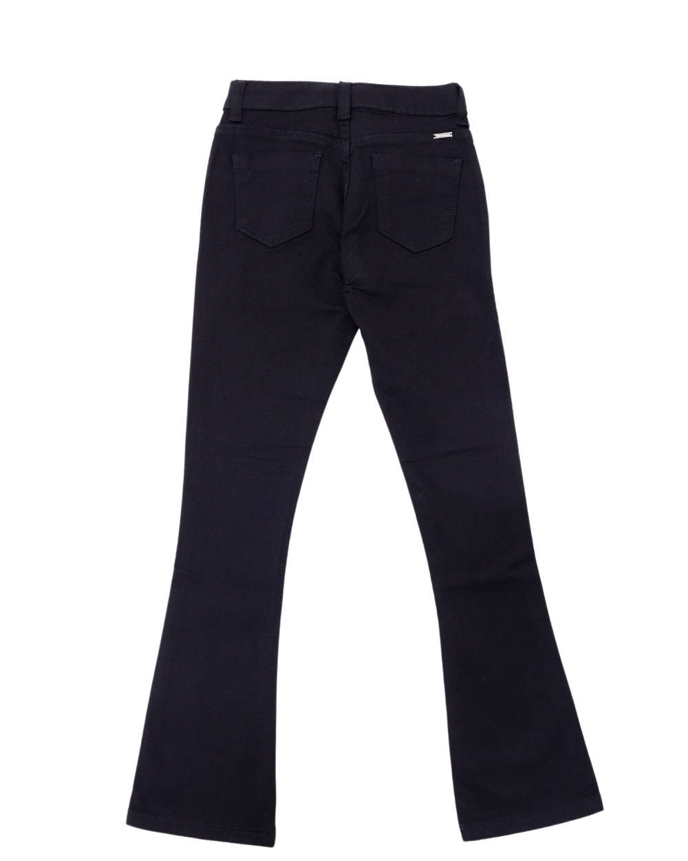 Calça Feminina, Peptuchy , Flare, lisa com lavagem na cor preta regulagem no cós e barra simples.