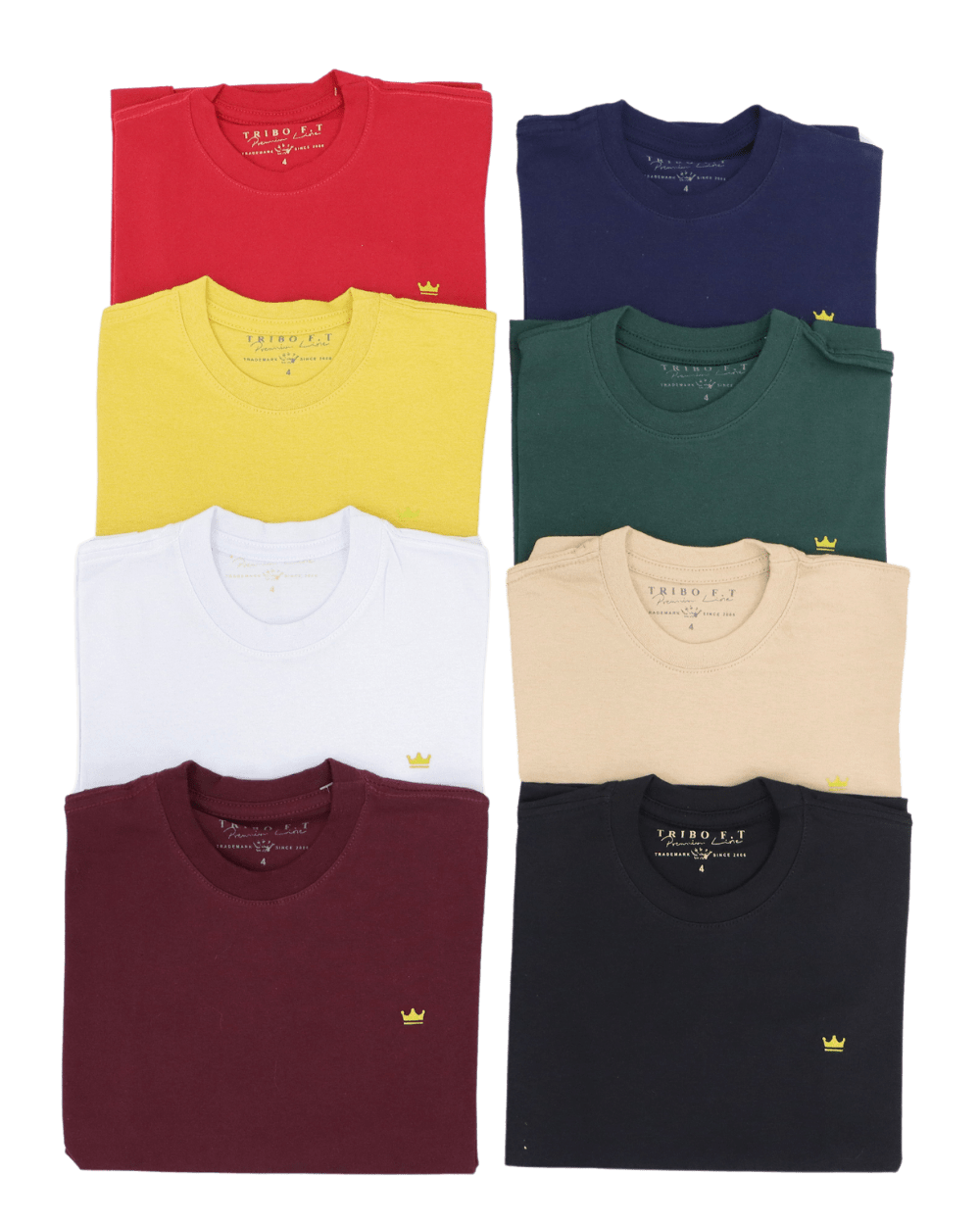 Camiseta Maculina Tribo Linha basica lisa disponível em 8 cores com um detalhe de coroa estampada em seu peito no lado esquerdo, costas lisa..