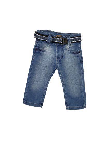 Calça jeans masculina ,com bolsos frontal e traseiro, fecho por botão e zíper, cós com regulagem e passante para cinto.