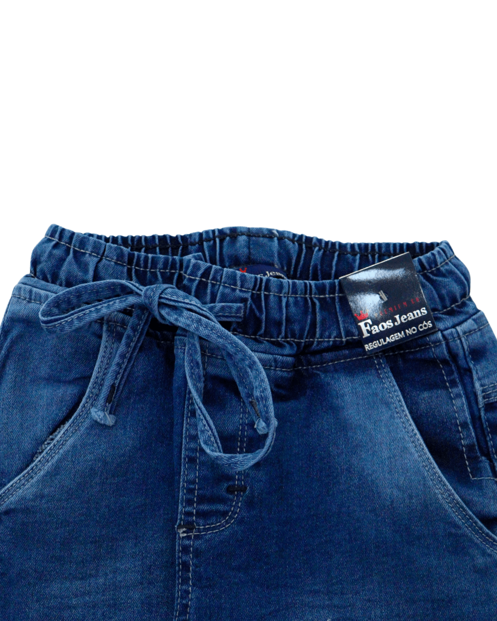 Calça jeans masculina, Faos Jeans, modelo cargo ,cintura elástica e barra com punho.