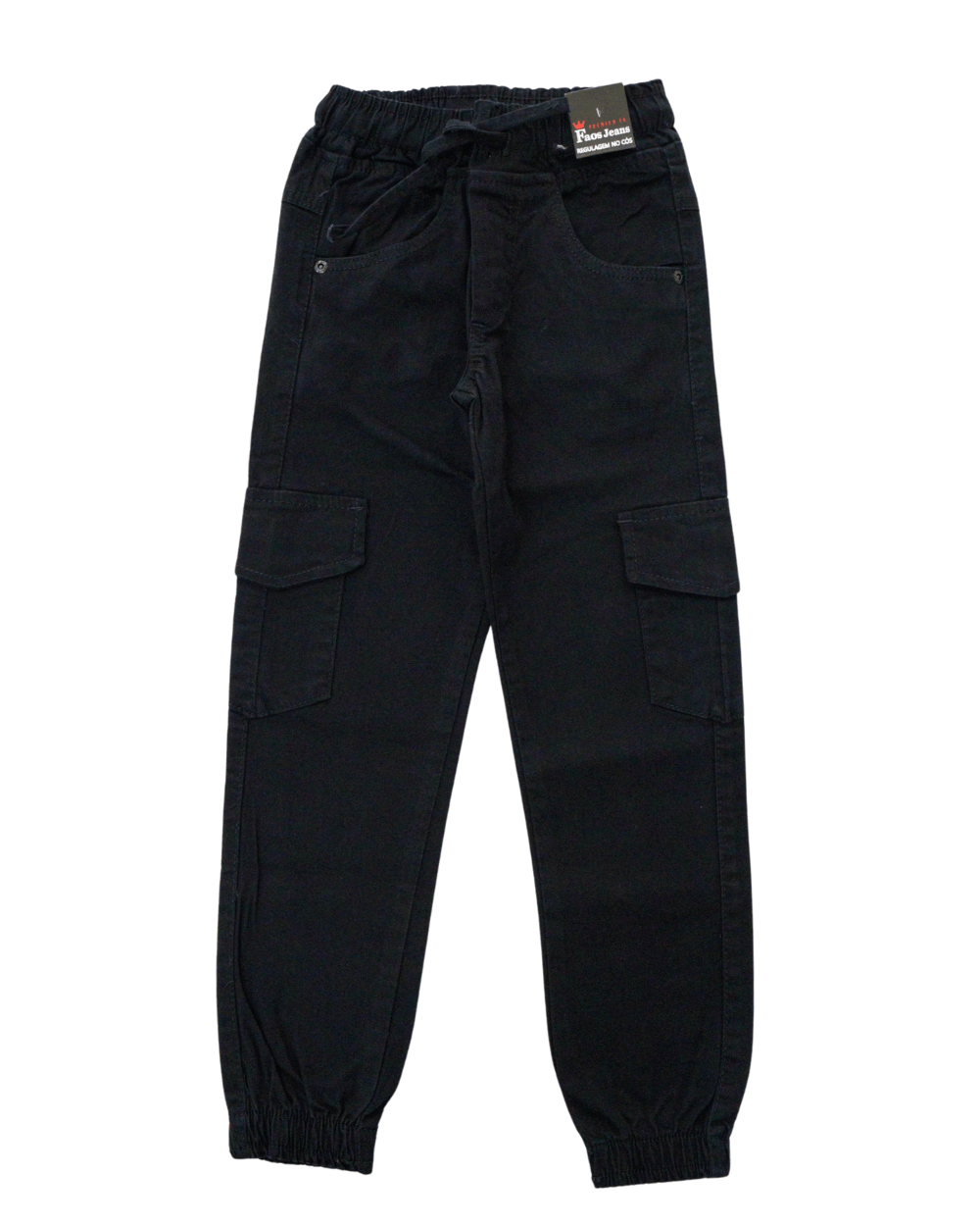Calça preta masculina, Faos Jeans, modelo cargo ,cintura elástica e barra com punho.