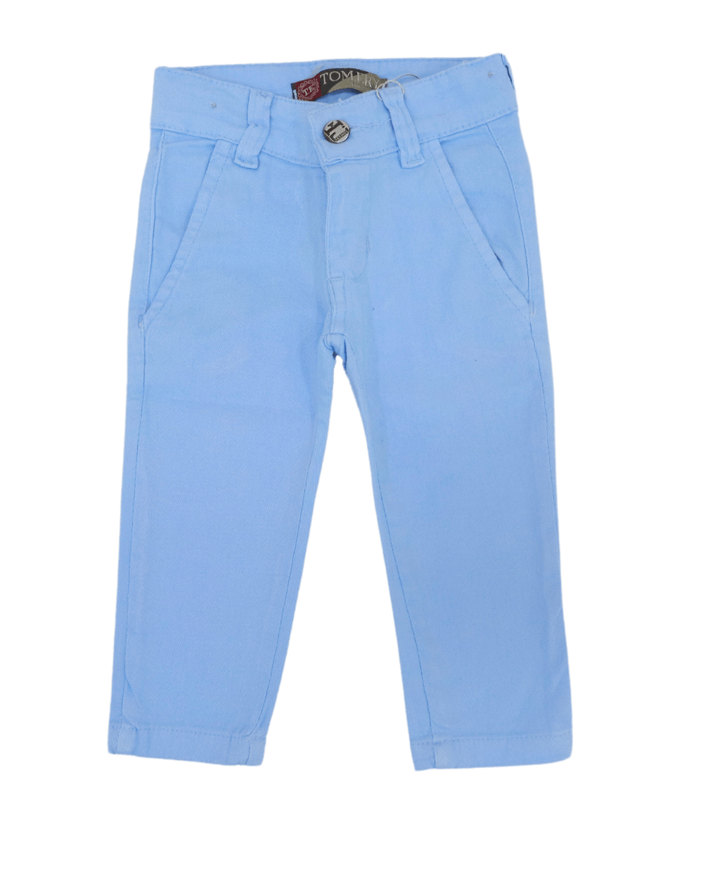 Calça sarja infantil Tom Ery , tecido confortavel, barra em acabamento simples, ajuste no cós, fechamento por zíper e botão acompanha cinto.