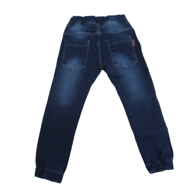 CALÇA JEANS JOGGER, LAVAGEM ESCURA.