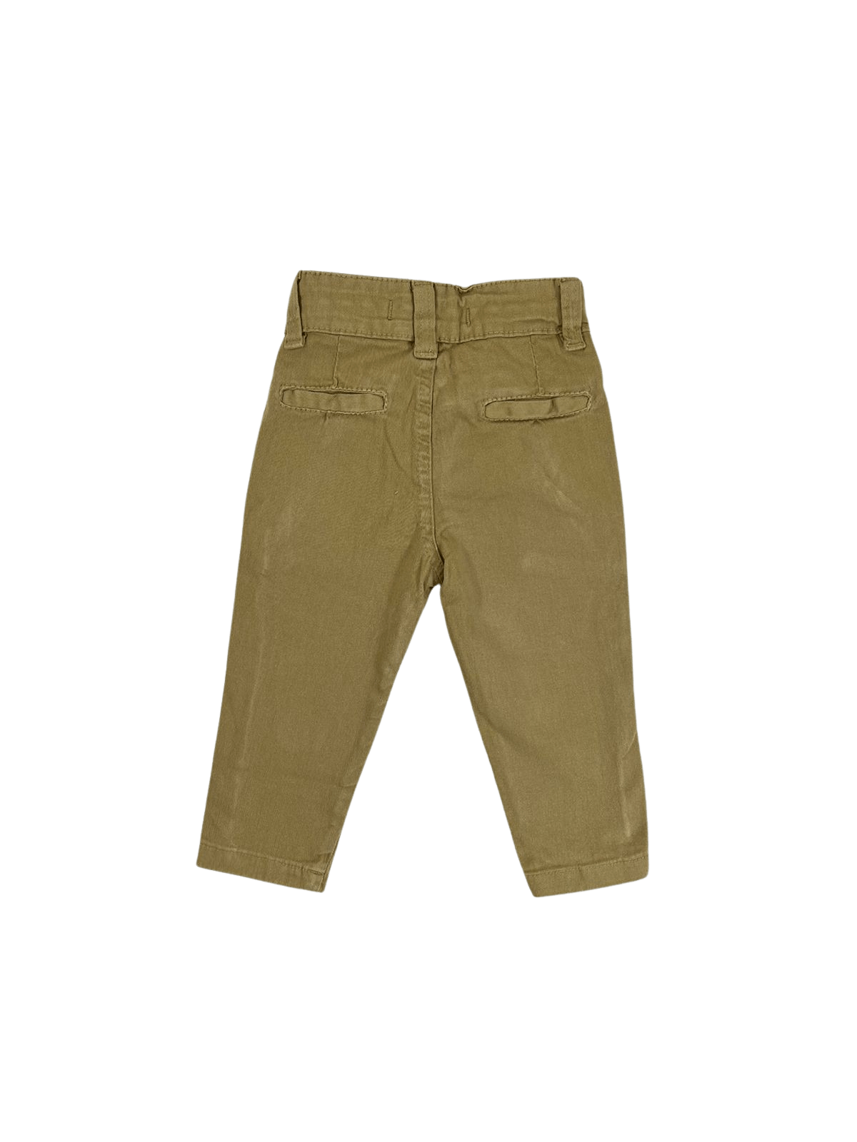 Calça sarja masculina infantil ,com bolsos frontal e traseiro fake, fecho por botão e zíper. Lisa, cós com regulagem e passante para cinto. Barra acabamento simples.