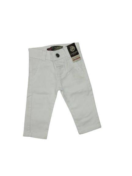 Calça sarja masculina infantil ,com bolsos frontal e traseiro fake, fecho por botão e zíper. Lisa, cós com regulagem e passante para cinto. Barra acabamento simples.