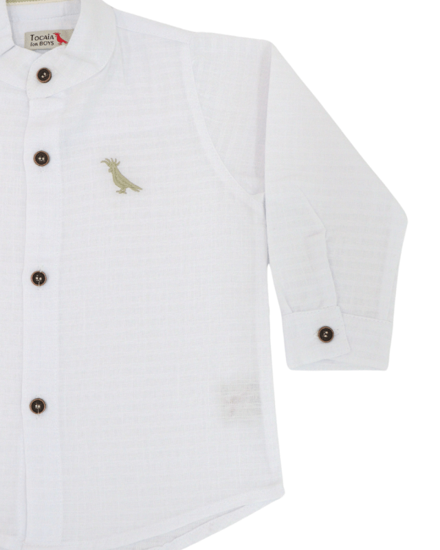 Camisa social manga longa, com um tecido perfeito, fechamento por botões, bordado no peito, gola padre.