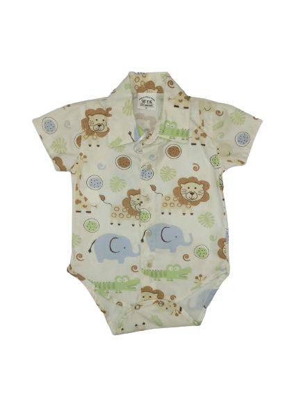 Camisa masculina manga curta infantil, estampa do safari, fechamento por botões frontal.