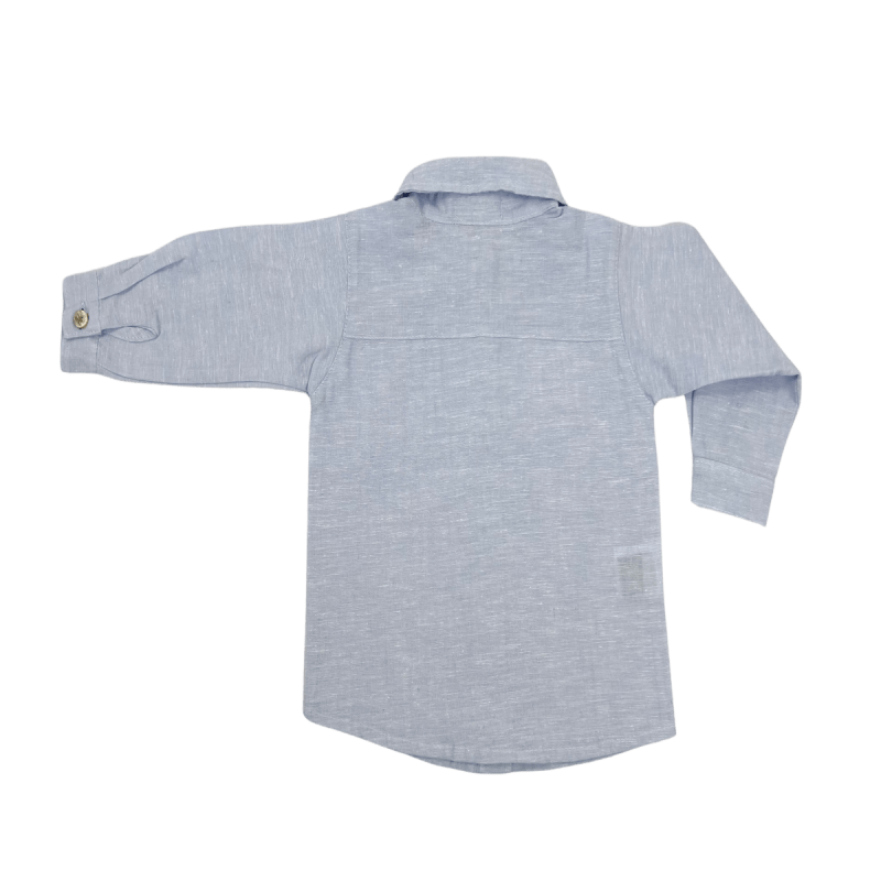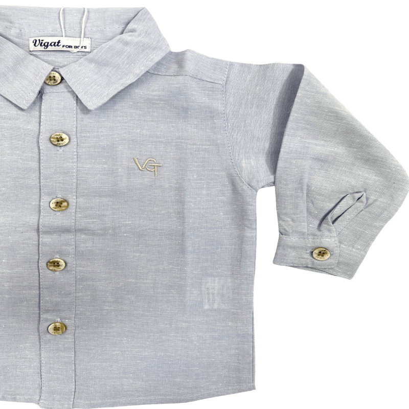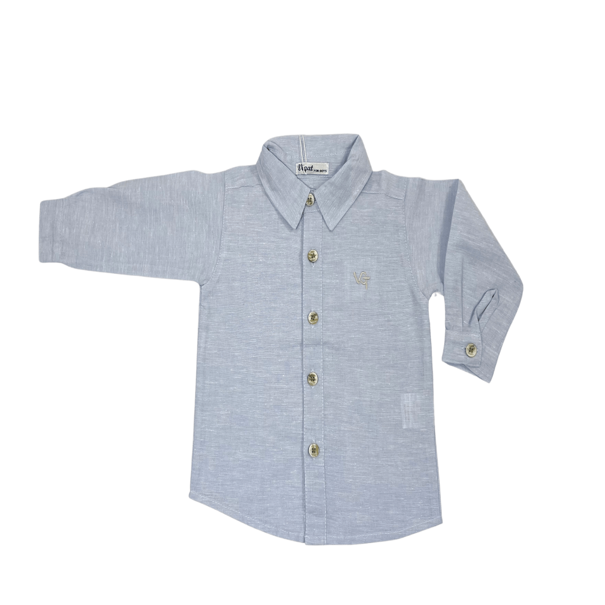Camisa masculina manga longa de linho vigat, super elegante e sofisticada, em um tom azul bebê chic, para os pequenos arrasarem.