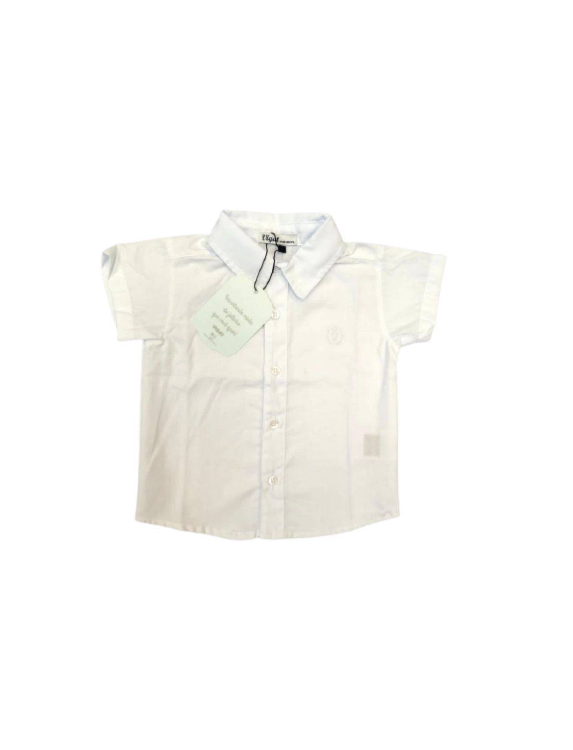 Camisa social manga curta, lisa ,fechamento por botões. , detalhe frontal bordado branco.