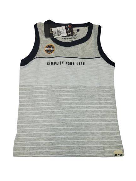 Camiseta masculina infantil regata, gola careca, estampada . Se ajusta facilmente ao corpo.