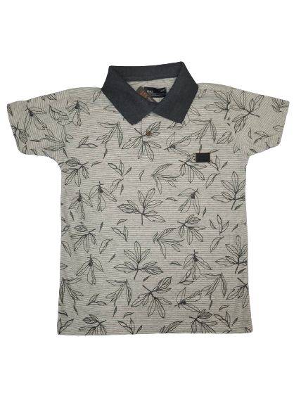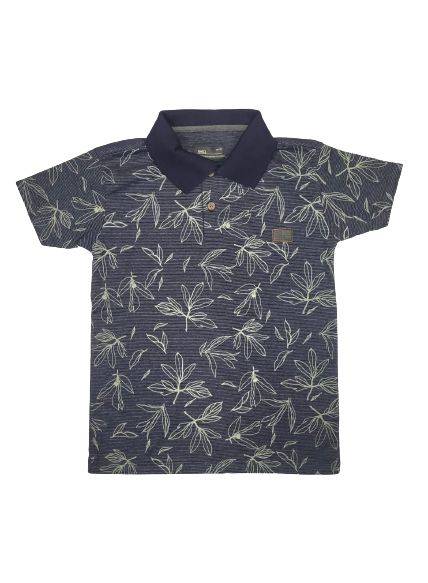 Camiseta masculina infantil manga curta, gola polo, estampada . Se ajusta facilmente ao corpo.