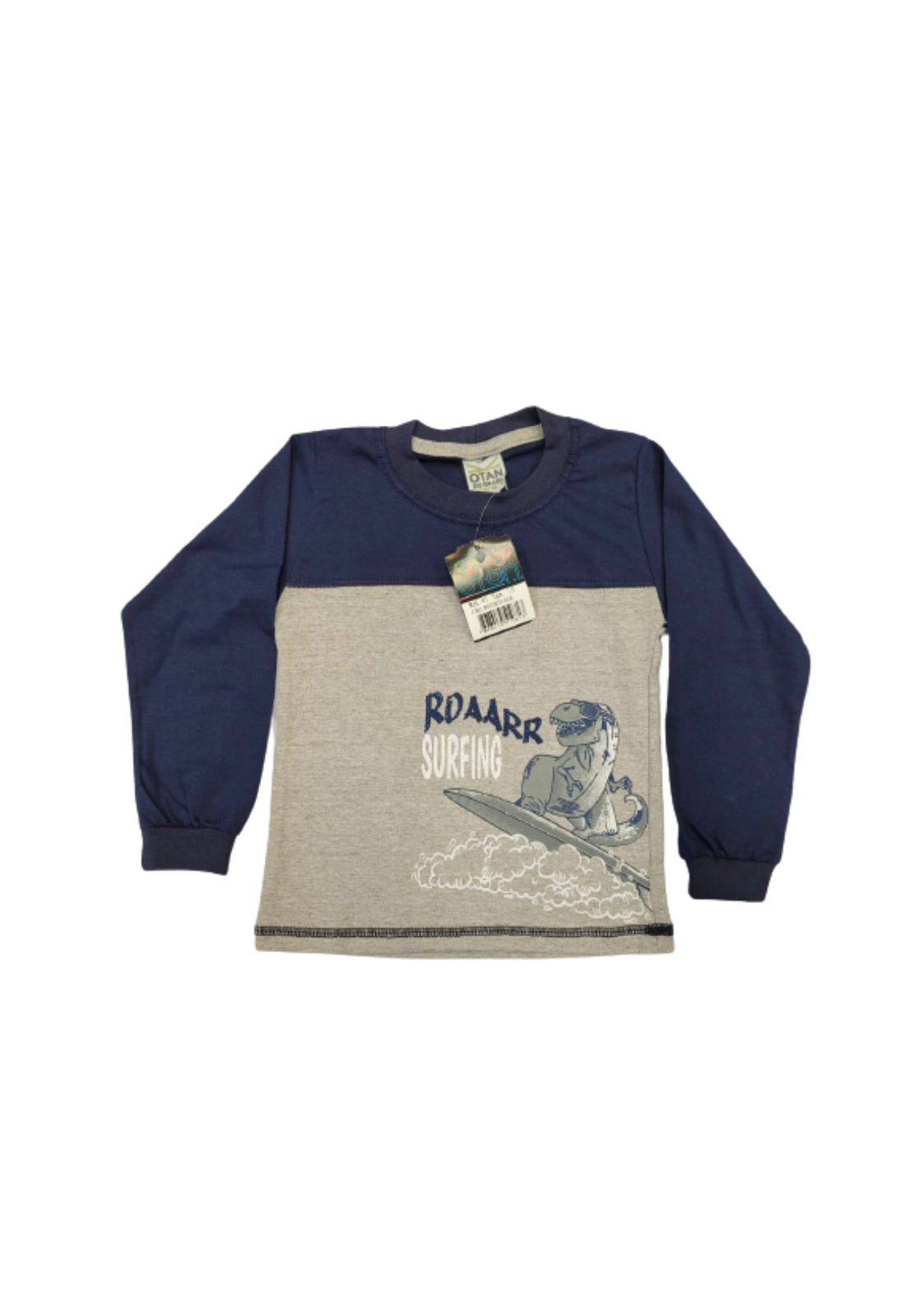 Camiseta masculina infantil manga longa, gola careca, com estampa . Se ajusta facilmente ao corpo.