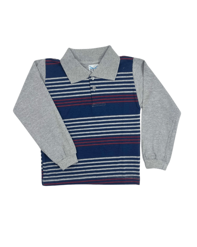 Camiseta masculina manga longa, listrada, Otan Gola Polo, tecido em algodão e poliéster.