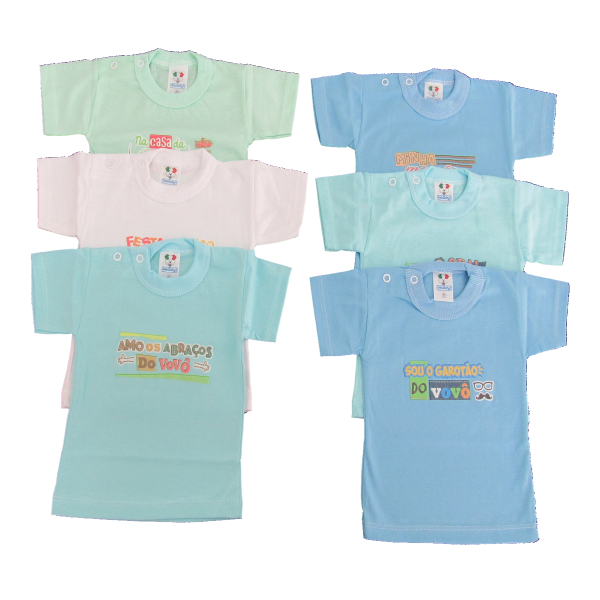 CAMISETA MANGA CURTA CORES SORTIDAS,PACOTE COM 6 PEÇAS.