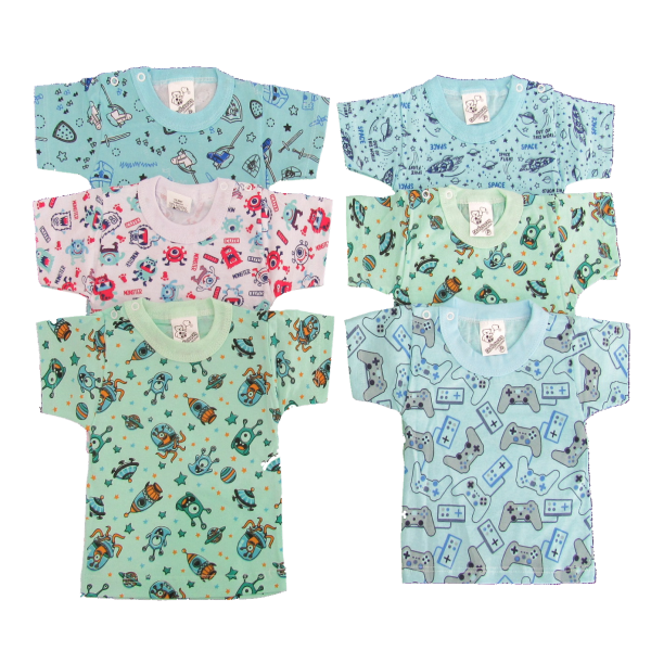 CAMISETA MANGA CURTA ESTAMPADA SORTIDAS,PACOTE COM 6 PEÇAS.
