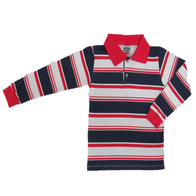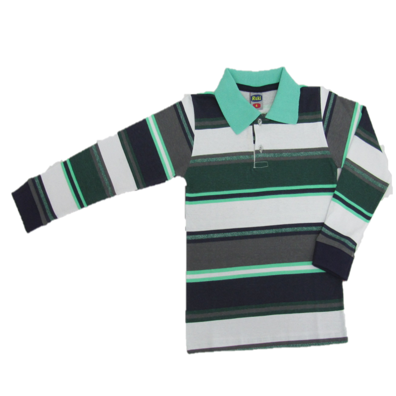 CAMISETA DE MANGA LONGA GOLA POLO, LISTRADA. DISPONÍVEL NAS CORES:AZUL/VERDE/VERMELHO