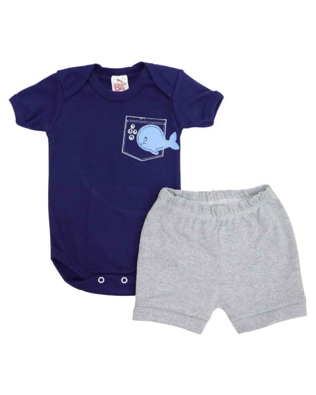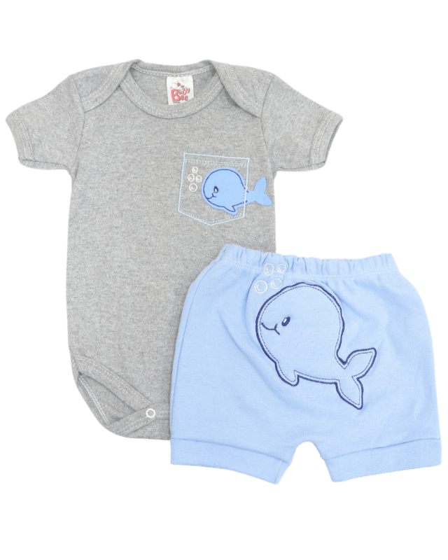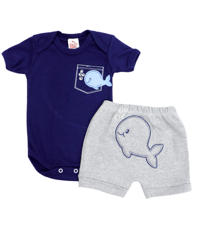 Conjunto masculino baby bee composto por 1 body manga curta bordado e uma bermuda lisa com a cintura em elástico para maior conforto do bebê.