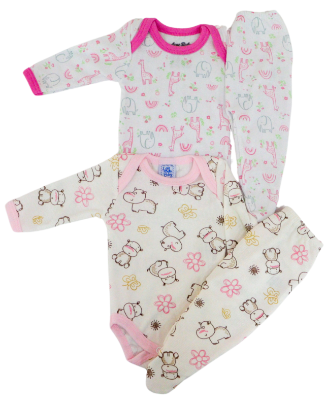 Conjunto Lene Baby composto por 1 body manga longa estampado e um mijão também com estampa com a cintura em elástico para maior conforto do bebê.