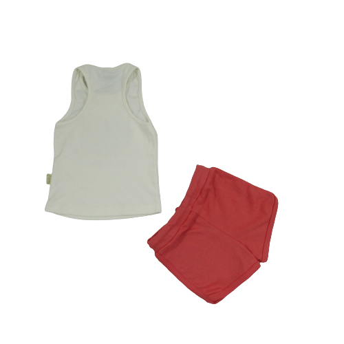 CONJUNTO INFANTIL FEMININO CAMISETA REGATA COM ESTAMPA CARACOL SHORTS CÓS COM CORDÃO TAMANHOS: 1-12/24 82 CM 2- 34/36 88CM 3- 36/48 98CM