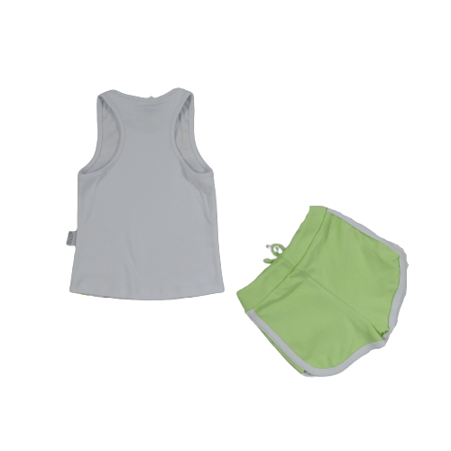 CONJUNTO INFANTIL FEMININO CAMISETA REGATA COM ESTAMPA FRUTAS SHORTS CÓS COM CORDÃO TAMANHOS: 1-12/24 82 CM 2- 34/36 88CM 3- 36/48 98CM